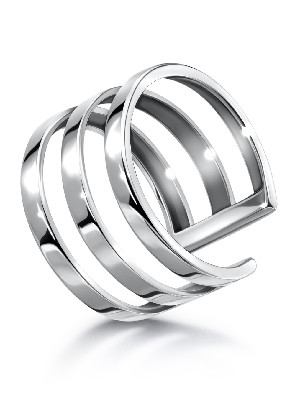 Серебряное тройное широкое кольцо на фалангу. Разъемное фаланговое кольцо, регулируется по размеру. Фаланговые кольца надеваются на верхнюю часть пальца. Прекрасный вариант для тех, кто хочет добавить соблазнительных деталей ежедневному образу. Кольцо покрыто родием (металл пратиновой группы, толщина слоя родия 10 микрон надежно защищает серебро от потемнения), что делает его неотличимыми от украшений из белого золота. Ширина кольца - 9 мм. Средний вес - 1,25 гр.Оригинальная, приятная на ощупь, подарочная упаковка станет хорошим дополнением к качественному кольцу.Ювелирное украшение в коробочке - идеальный подарок для себя, подруги или любимой.