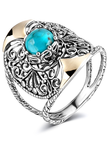 Серебряное кольцо Yaffo с бирюзой и золотом