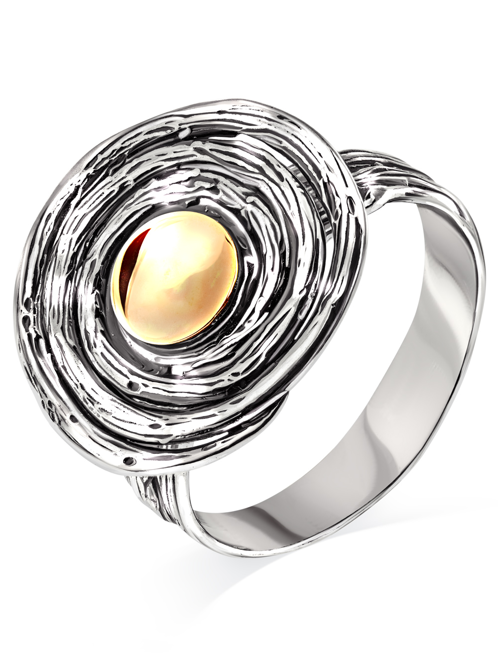 Крупное серебряное кольцо с золотым элементом (это цельная золотая пластина толщиной 0,2 мм., надежно припаянная к украшению). В отличие от позолоты, золото на этом кольце не сотрется. Удобная посадка кольца. Размер верхней части кольца - 18 на 19 мм. Диаметр золотого элемента - 6 мм, ширина шинки - 4 мм. Традиционно израильские украшения не родируются, а покрываются чистым серебром 999 и оксидируются (чернятся). Черненое серебро надежно защищено от воздействия внешних факторов. Украшения Эйлат произведены вручную израильскими ювелирами по старинной технологии. В коллекции винтажных украшений Вы не найдете двух одинаковых изделий. Круглое широкое кольцо без камней выгодно подчеркнет вашу индивидуальность, подойдёт как на каждый день, так и для создания необычных, праздничных и вечерних образов. Причудливые формы, неровные поверхности, изогнутые линии, мягкие переходы - все это элементы дизайна EILAT, позаимствованные у природы.