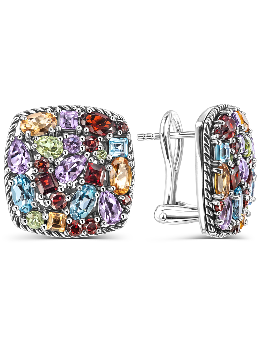Крупные квадратные серьги серебро с натуральными полудрагоценными камнями топаз, аметист, гранат, перидот, хризолит. Красивые большие серьги с крупными камнями выгодно подчеркнут вашу индивидуальность, могут быть вечерним праздничным аксессуаром или серьгами на каждый день. На оригинальные массивные серьги нанесено покрытие -оксидирование. Оксидирование (чернение) - это процесс получения на поверхности серебряного изделия защитной пленки, устойчивой к воздействиям внешних факторов. Классический замок омега. Крупные серьги отличный подарок для себя или близкого человека.