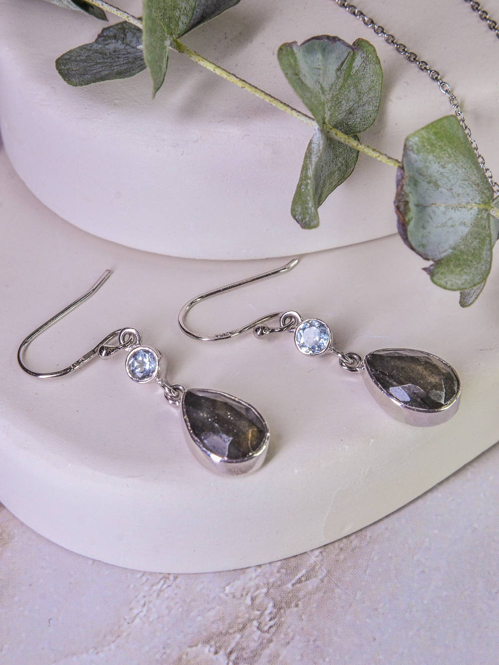 Длинные серьги с натуральными лабрадоритом и топазом. Современная коллекция украшений в стиле минимализм создана в Израиле. В коллекции красивые и стильные серьги различных дизайнов: кольца, конго, гвоздики, длинные, висячие, пусеты, геометрия, минимализм, с натуральными камнями. Покрытие родий. Отличный подарок на 8 марта, подруге, маме, девушке, на день рождения, женщине, бабушке, сестре, жене, свекрови, коллеге, учителю, тете