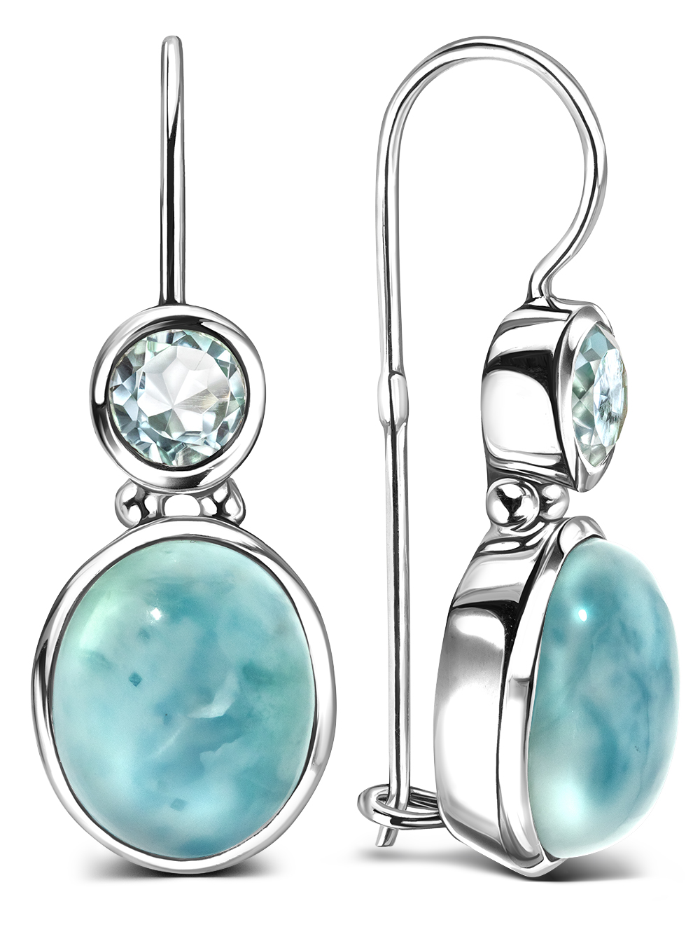 Серебряные серьги с натуральным ларимаром и голубым кварцем. Современная интерпретация средиземноморского этнического стиля. Серьги серебро 925 покрыты родием (металл пратиновой группы). Толщина покрытия 10 микрон надежно защищает серебро от потемнения и делает его неотличимым от белого золота. Необычные голубые серьги с камнями выгодно подчеркнут вашу индивидуальность, могут быть вечерним аксессуаром или серьгами на каждый день. Размер серьги -29 мм, диаметр кварца - 4,5 мм, размер ларимара - 9 на 11 мм. Средний вес - 5,1 гр. Серьги длинные, крупные, оригинальной формы. Замок петля с застежкой простой и надежный.