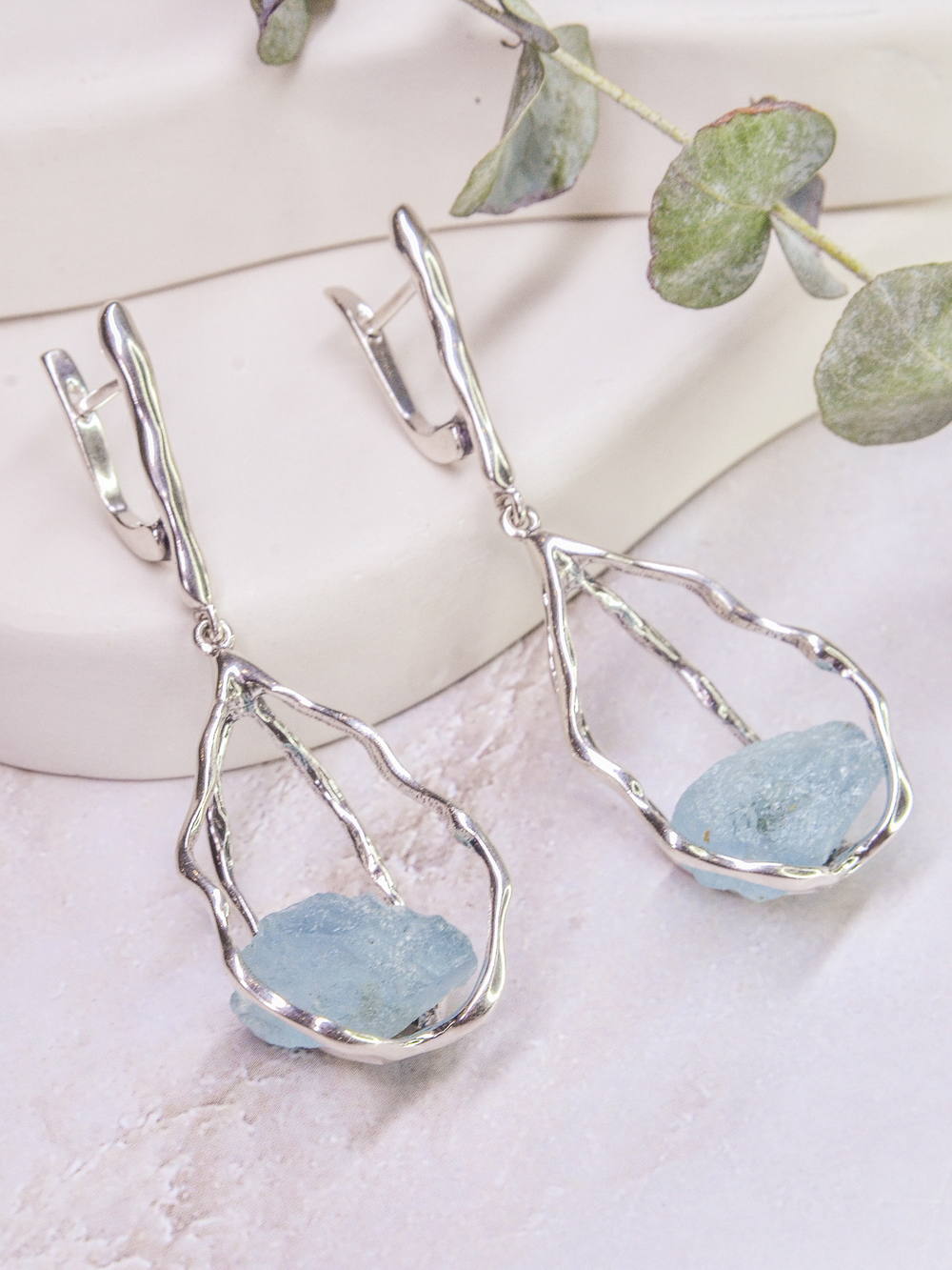 Серебряные серьги с аквамарином