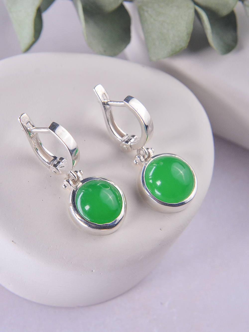 Серебряные серьги с халцедоном