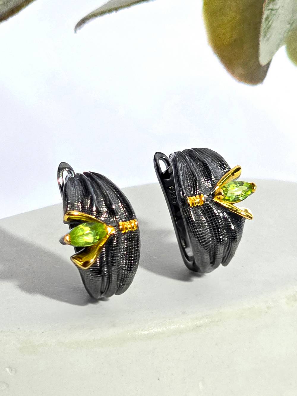 Серебряные серьги с хризолитом