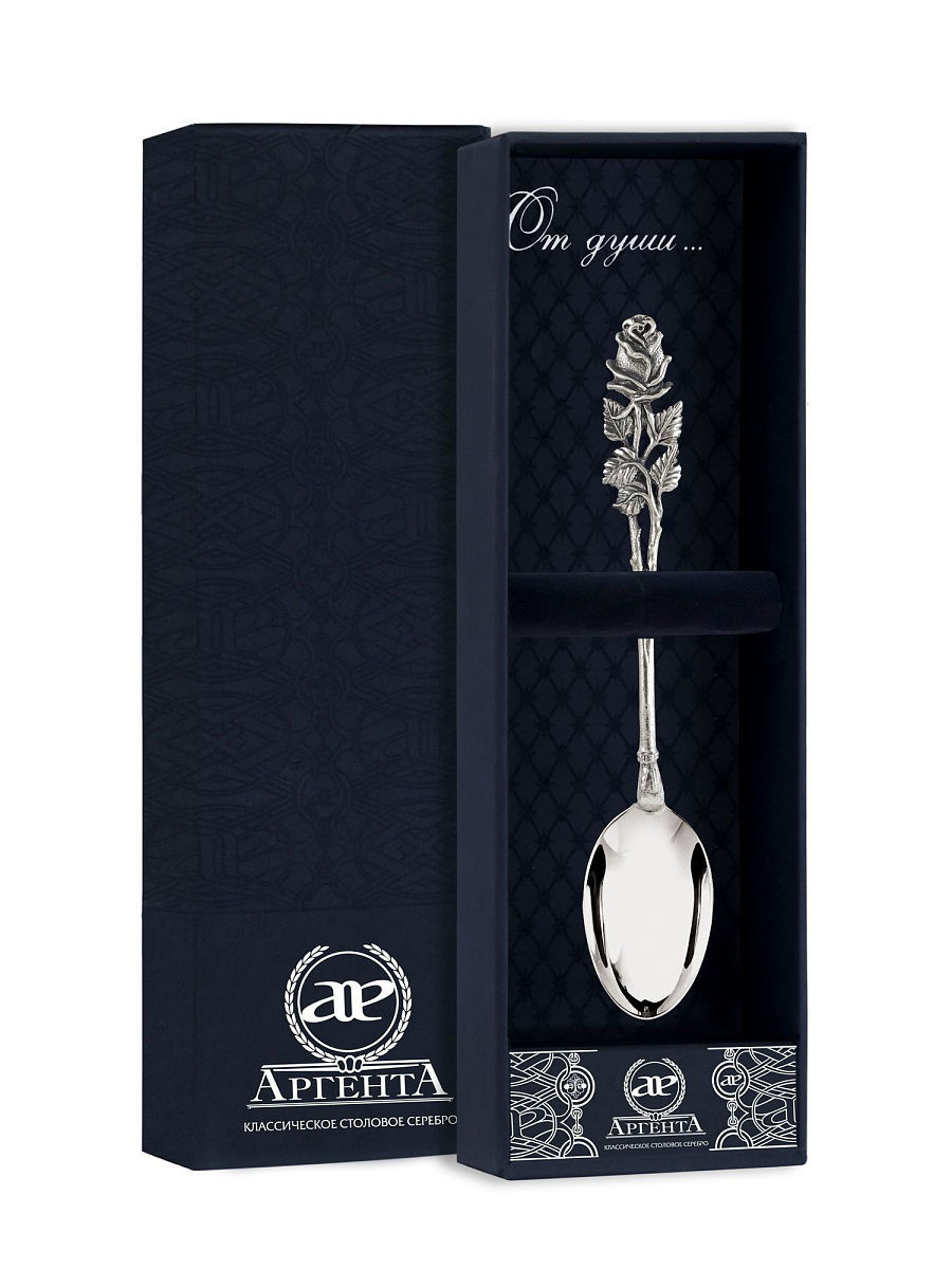 Ложка чайная "Роза" литая с черн. + футляр
