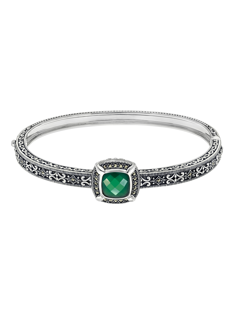 Серебряный браслет ALEXANDRE VASSILIEV с зеленым агатом, марказитами Swarovski