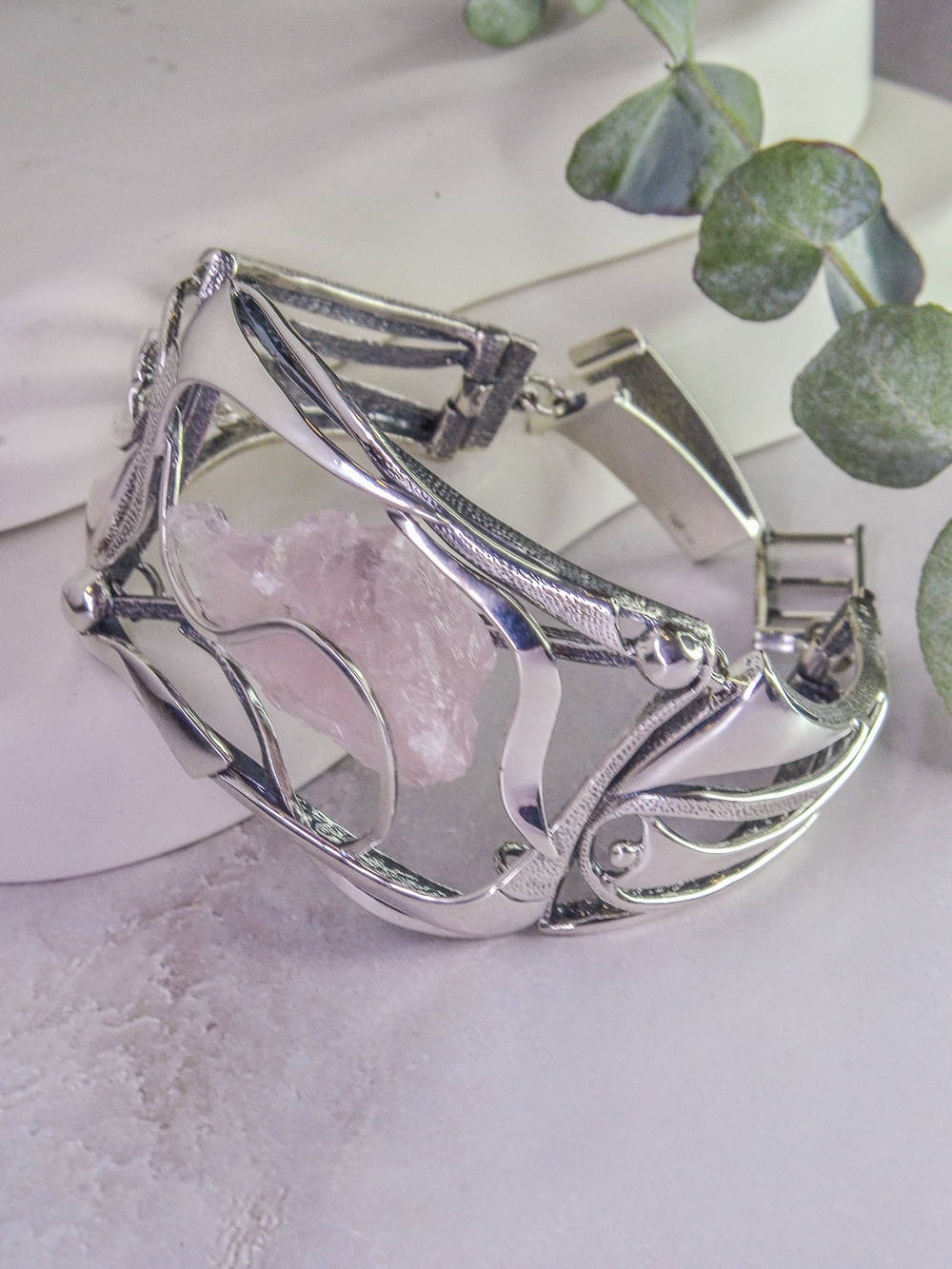 Серебряный браслет с розовым кварцем