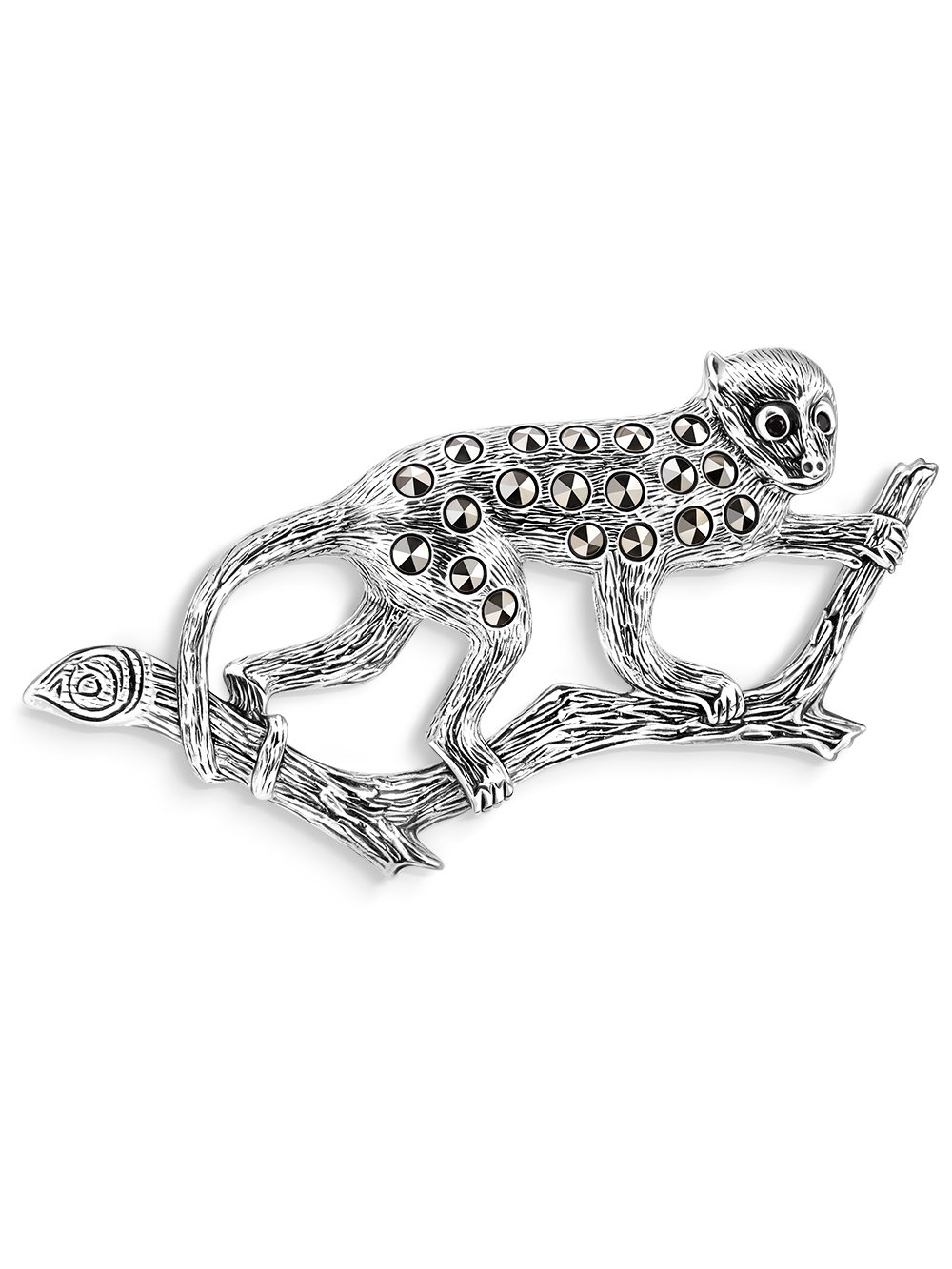 Серебряная брошь ALEXANDRE VASSILIEV с марказитами Swarovski и гранатом