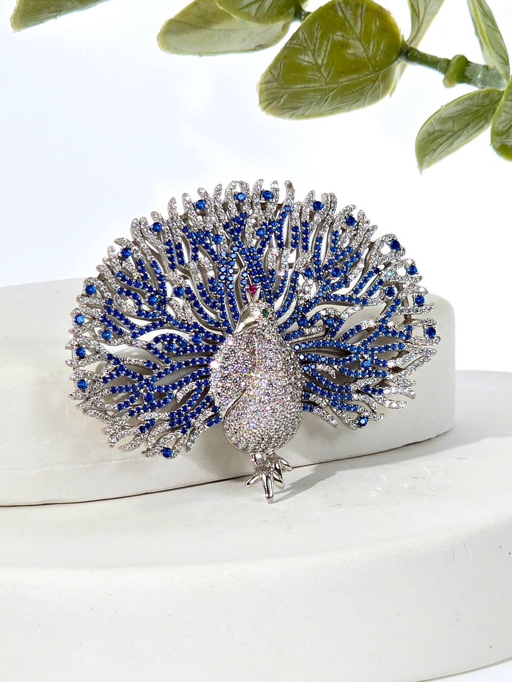 Серебряная брошь с цветными фианитами
