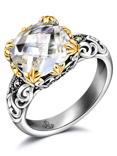 Серебряное кольцо ALEXANDRE VASSILIEV с горным хрусталем, позолотой и марказитами