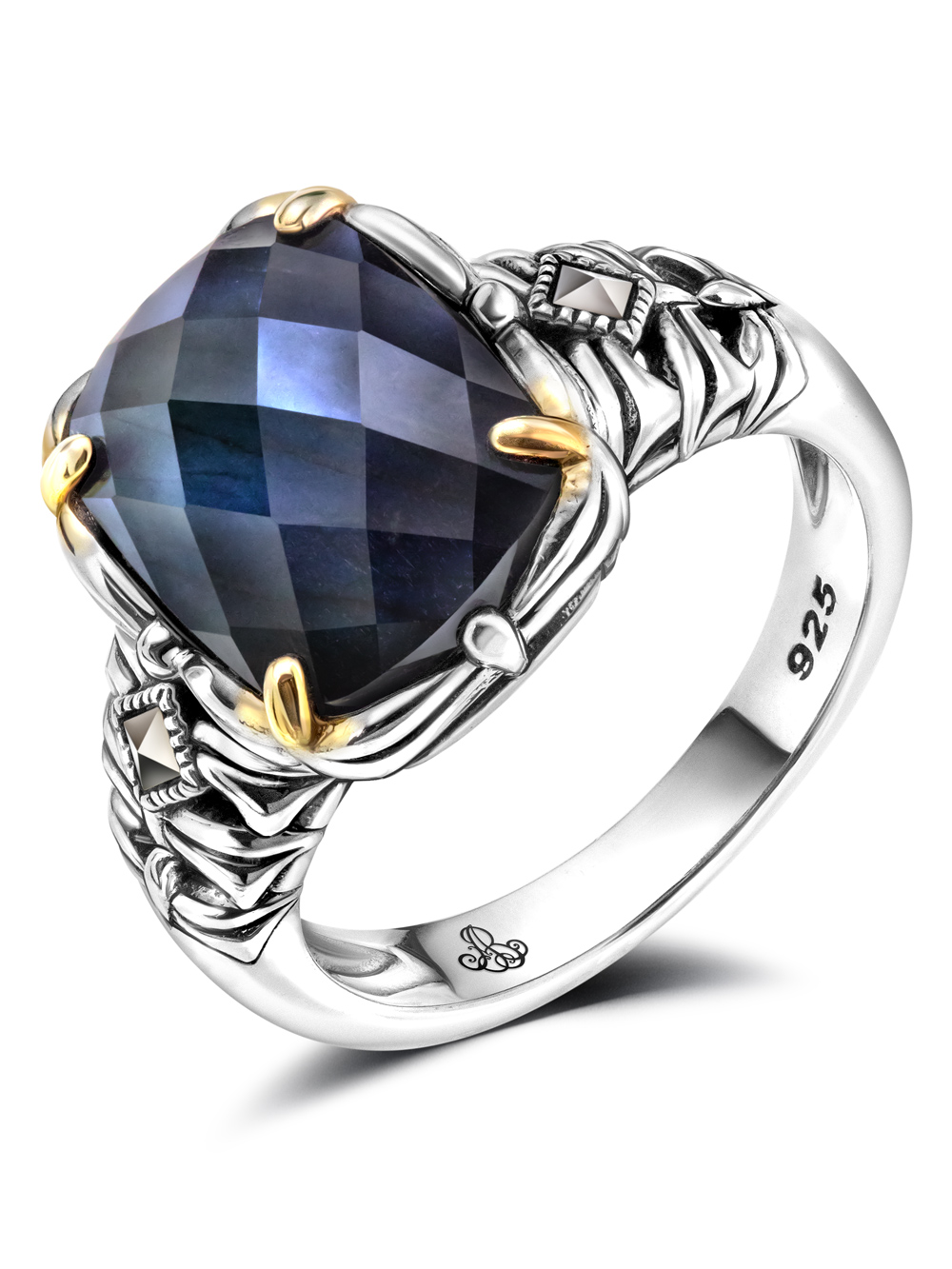 Серебряное кольцо ALEXANDRE VASSILIEV с лабрадоритом, горным хрусталем, марказитами и позолотой