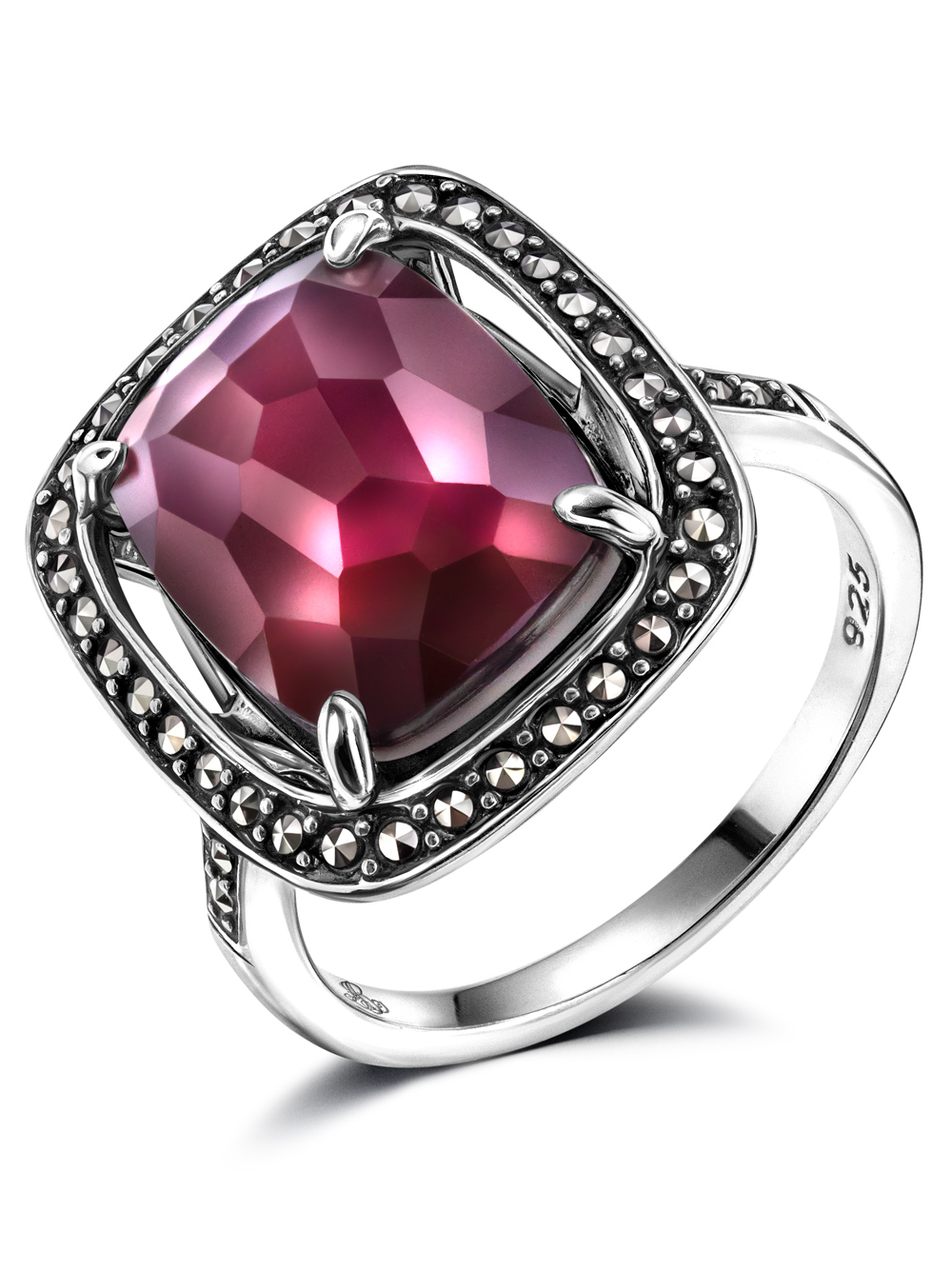 Кольцо серебро 925 бургунское вино. Центральный камень - перламутр из раковины морских моллюсков насыщенного глубокого рубинового цвета сверху закрытый искрящимся горным хрусталем для придания глубины, объема и таинственного мерцания.