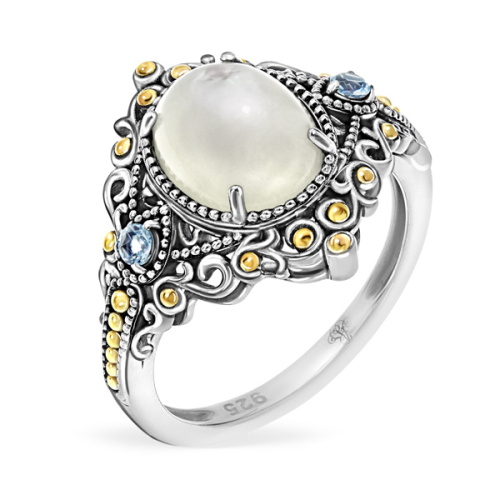 Серебряное кольцо ALEXANDRE VASSILIEV с перламутром, топазом и позолотой