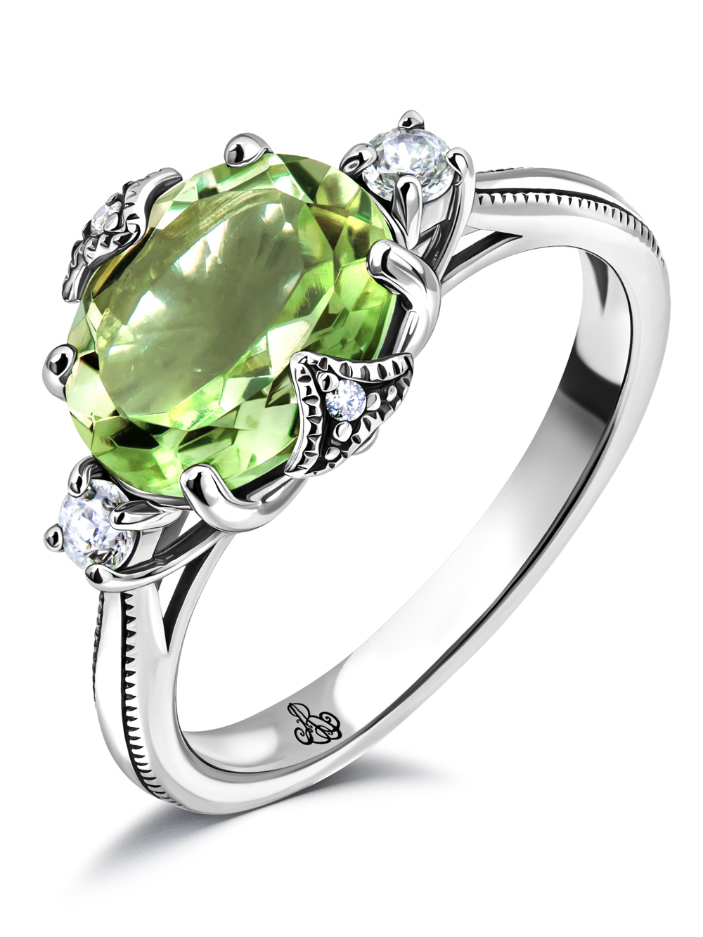 Серебряное кольцо ALEXANDRE VASSILIEV с зеленым аметистом и фианитами Swarovski