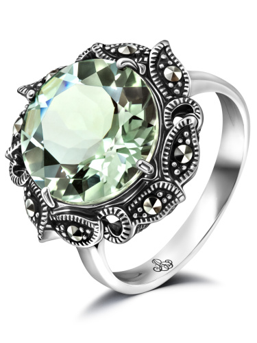 Серебряное кольцо ALEXANDRE VASSILIEV с зеленым аметистом и марказитами Swarovski