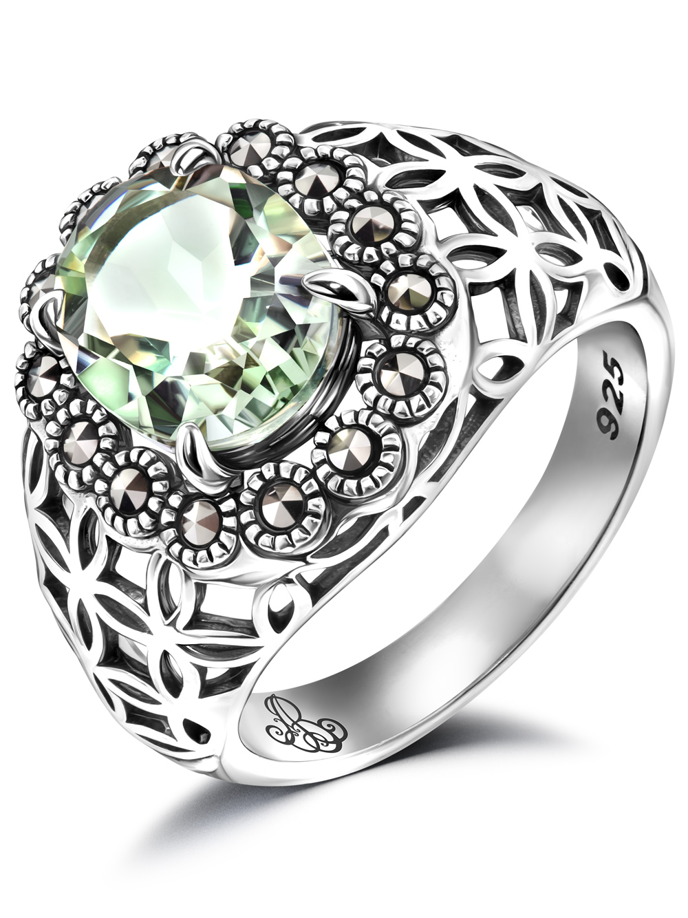 Серебряное кольцо ALEXANDRE VASSILIEV с зеленым аметистом и марказитами Swarovski