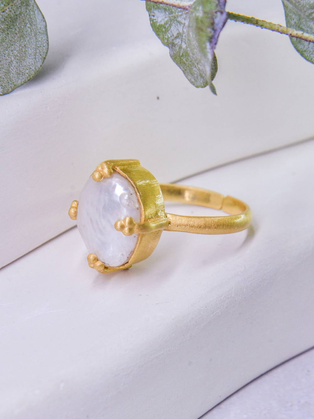 Серебряное кольцо с натуральным жемчугом. Современная интерпретация средиземноморского этнического стиля. Ультрамодное матовое покрытие - это слой золота 750 пробы 5-10 микрон (Vermeil). Кольцо отлично сочетаются с золотыми и серебряными украшениями. Позолоченное кольцо с синим камнем выгодно подчеркнет вашу индивидуальность, подойдёт как на каждый день, так и для создания необычных, праздничных и вечерних образов.