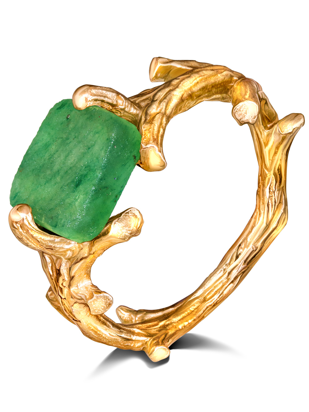 Серебряное кольцо с натуральным необработанным - природным зеленым авантюрином. Современная интерпретация средиземноморского этнического стиля. Зеленый авантюрин - камень медитации, пробуждает положительные эмоции, дарит оптимизм, заряжает положительной энергией. Ультрамодное желтое фактурное покрытие - это слой золота 750 пробы 5-10 микрон (Vermeil). Размер авантюрина - 6 на 8 мм. Высота кольца - 6 мм. Удобная эргономичная шинка выполнена в виде веточек. Необычное кольцо перстень с зеленым камнем выгодно подчеркнет вашу индивидуальность, подойдёт как на каждый день, так и для создания праздничных и вечерних образов!