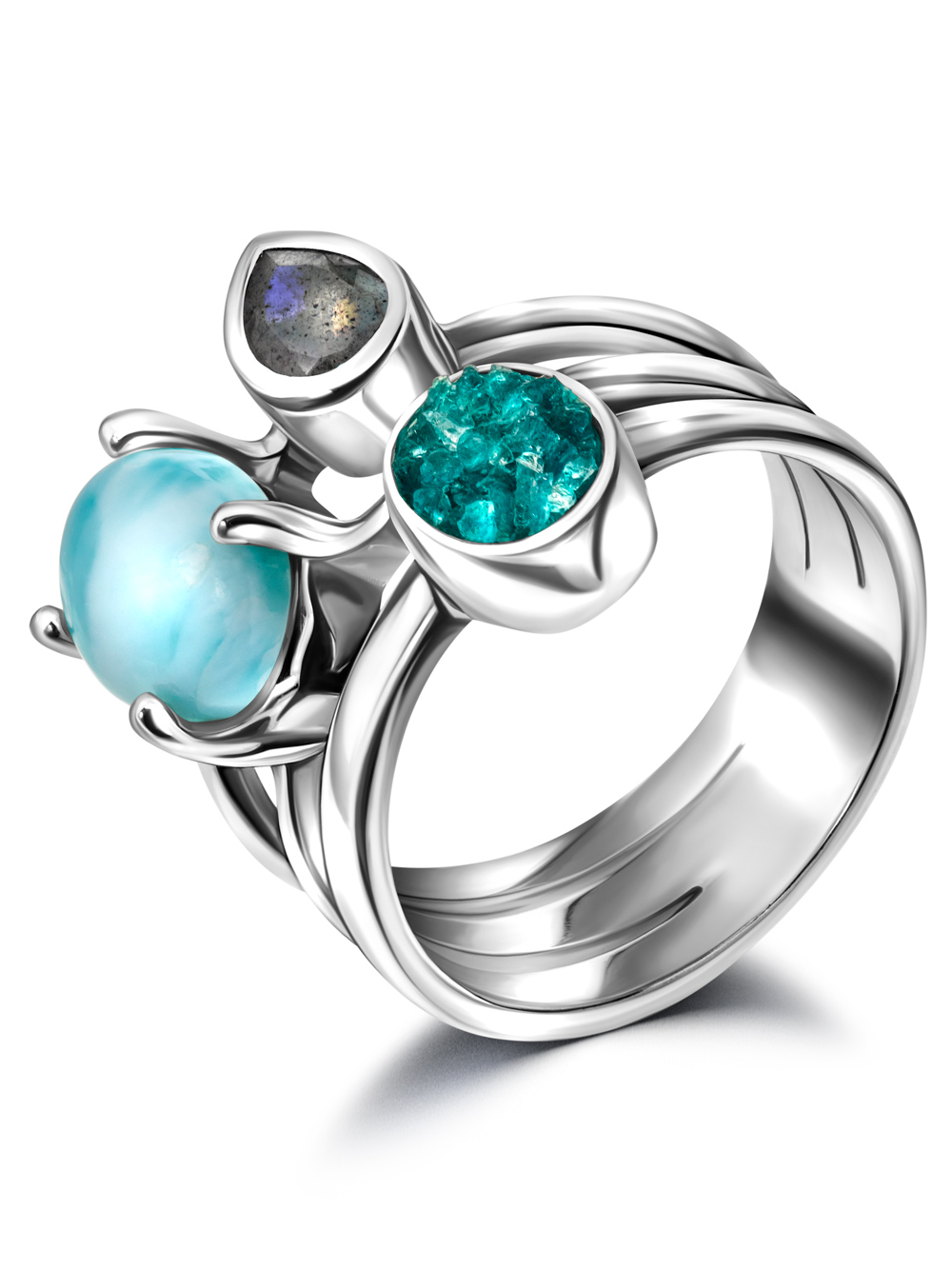 Серебряное кольцо EILAT с ларимаром, лабрадоритом и жадеитом