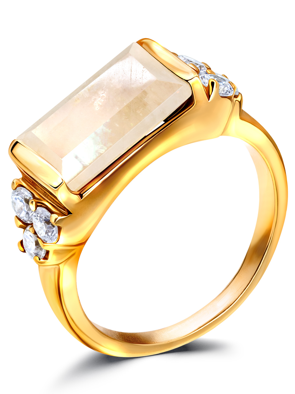 Серебряное кольцо EILAT с лунным камнем, фианитом и позолотой