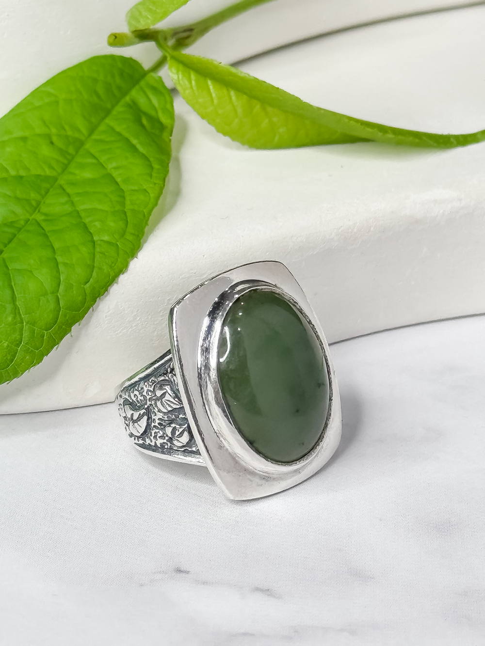 Серебряное кольцо с нефритом