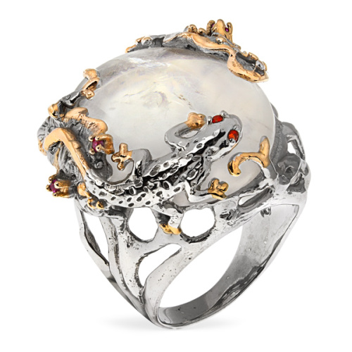 Серебряное кольцо Sandara с горным хрусталем, родолитом, сапфирами и позолотой