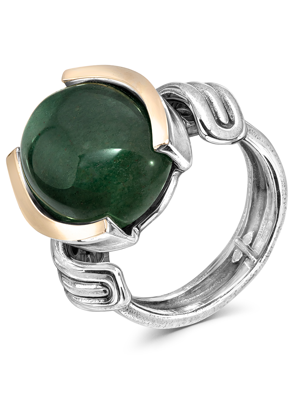 Серебряное кольцо Yaffo с авантюрином и золотом