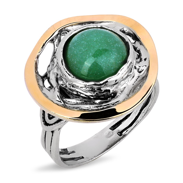 Серебряное кольцо Yaffo с авантюрином и золотом