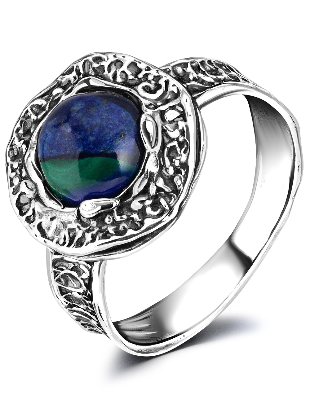 Cеребряное кольцо женское в винтажном стиле с натуральным азуритом. Необычное кольцо с сине-зеленым камнем выгодно подчеркнет вашу индивидуальность, может быть вечерним аксессуаром или украшением на каждый день.