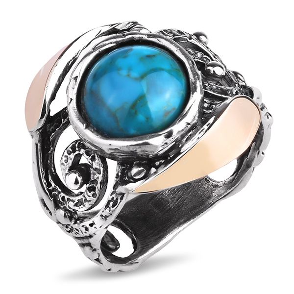 Серебряное кольцо Yaffo с бирюзой и золотом