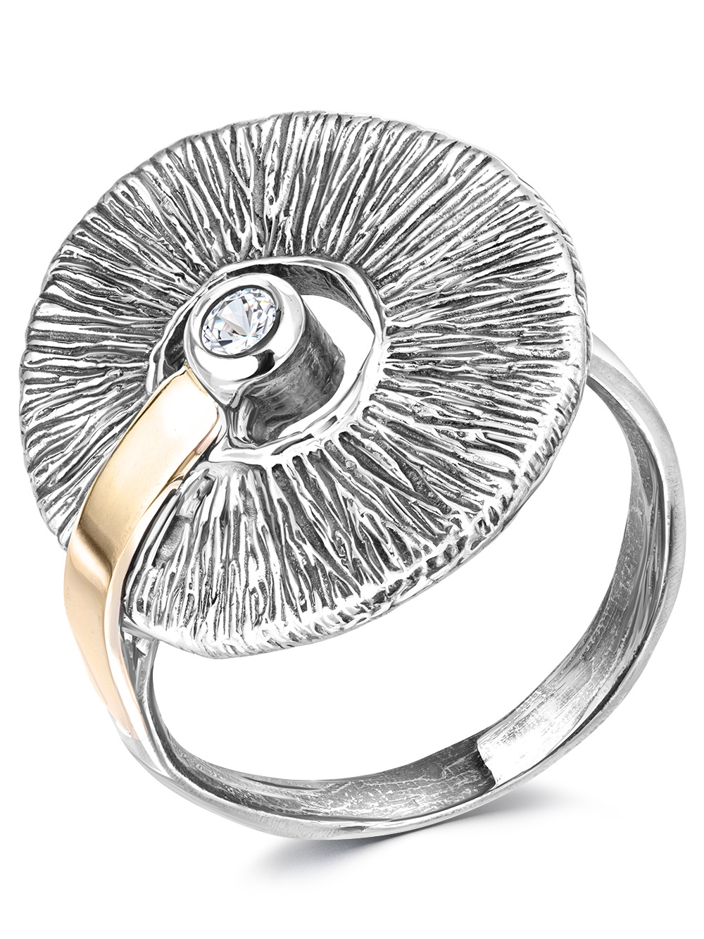 Серебряное кольцо Yaffo с фианитами и золотом