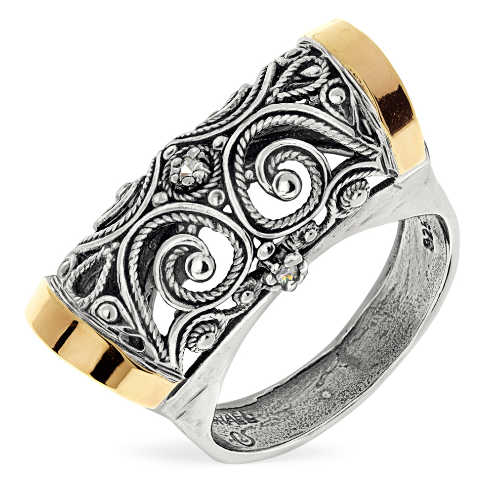 Серебряное кольцо Yaffo с фианитом и золотом