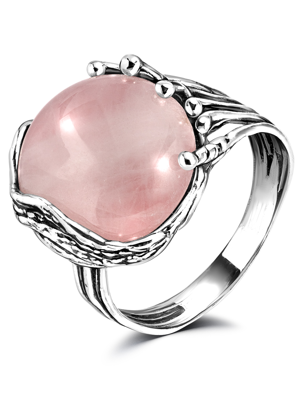 Cеребряное кольцо женское в винтажном стиле с натуральным розовым кварцем. Необычное кольцо с крупным камнем выгодно подчеркнет вашу индивидуальность, может быть вечерним аксессуаром или украшением на каждый день.