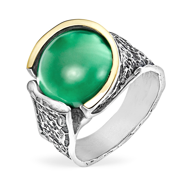 Серебряное кольцо Yaffo с зеленым агатом и золотом