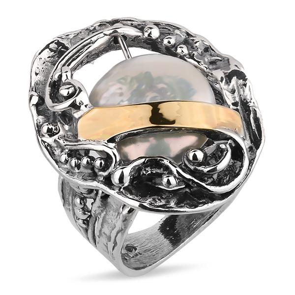 Серебряное кольцо Yaffo с жемчугом и золотом