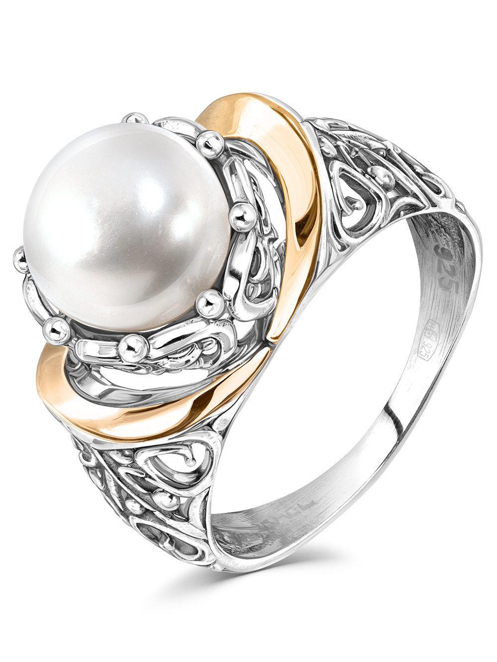 Серебряное кольцо Yaffo с жемчугом и золотом