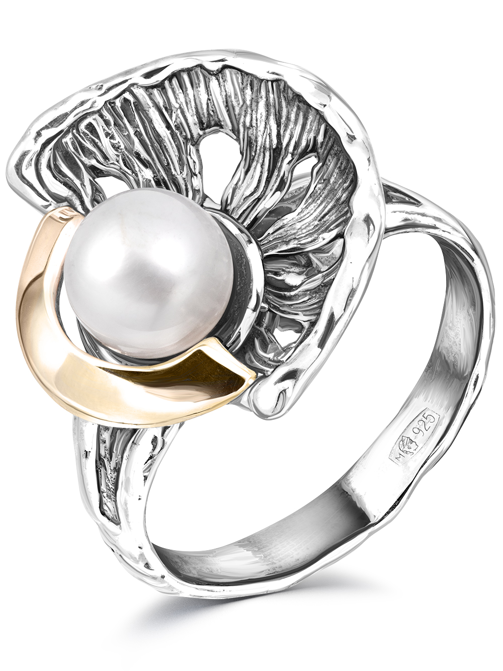 Серебряное кольцо Yaffo с жемчугом и золотом