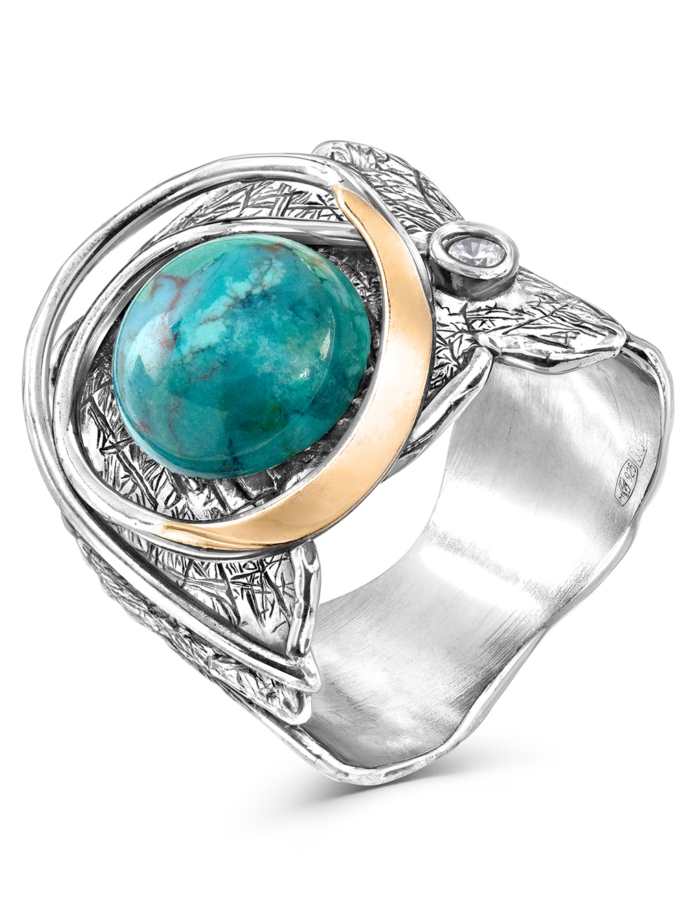 Серебряное кольцо Yaffo с золотом и бирюзой