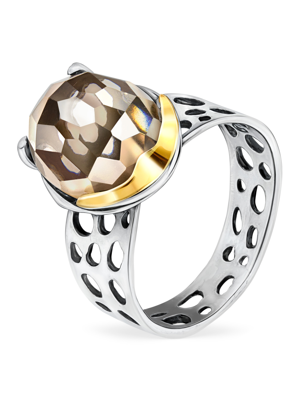 Серебряное кольцо Yaffo с золотом и раухтопахом