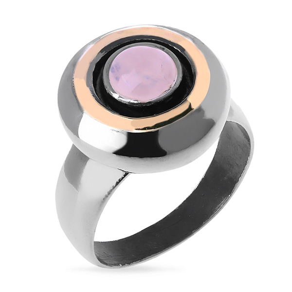 Серебряное кольцо Yaffo с золотом и розовым кварцем