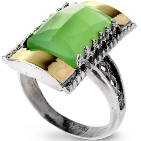 Серебряное кольцо Yaffo с золотом и зеленым кварцем