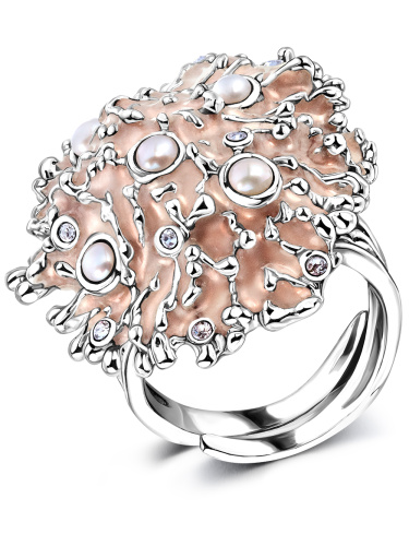 Серебряное кольцо Жар-Птица с жемчугом