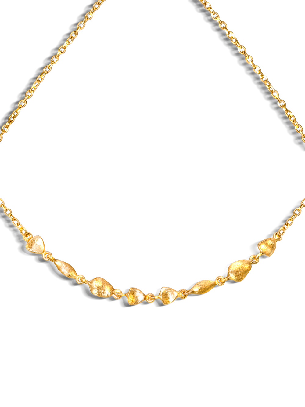 Серебряное колье на шею с фактурной поверхностью. Современная интерпретация средиземноморского этнического стиля. Ультрамодное желтое матовое покрытие - это слой золота 750 пробы 5-10 микрон (Vermeil). Центральный декоративный элемент колье крепится к цепочке классического якорного плетения. Размер декоративного элемента - 63 на 5,5 мм. Замок - карабин. Благодаря регулировке на 400 мм/ 425 мм/ 450 мм вы можете носить колье на разных уровнях, сочетая с другими украшениями, создавая многослойность образа и играя со стилем. Позолоченное колье выгодно подчеркнет вашу индивидуальность, подойдёт как на каждый день, так и для создания необычных, праздничных и вечерних образов.