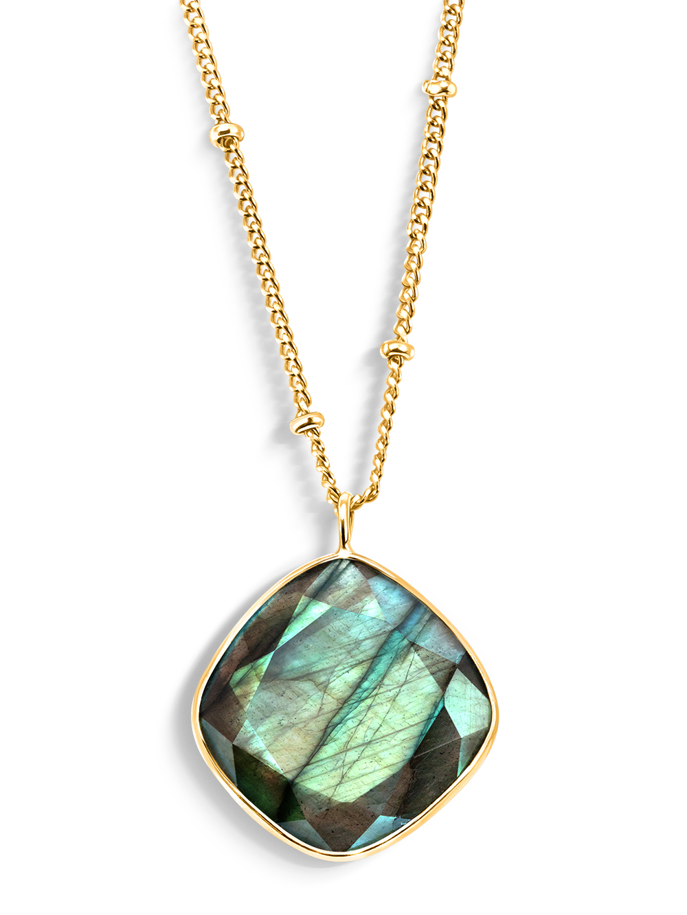 Серебряное колье на шею с натуральным камнем - лабрадоритом. Современная интерпретация средиземноморского этнического стиля. Ультрамодное желтое глянцевое покрытие - это слой позолоты 750 пробы 5-10 микрон (Vermeil). Серебряный крупный кулон с камнем крепится к цепочке классического панцирного плетения с декоративными элементами (капельки серебра). Размер большой подвески - 20 на 20 мм (ромб). Размер лабрадорита - 18 на 17 мм. Ср. вес - 6,5 гр. Замок - карабин. Благодаря регулировке от 400 до 500 мм вы можете носить колье серебро 925 на разных уровнях. Позолоченное колье с зеленым камнем выгодно подчеркнет вашу индивидуальность, может быть вечерним аксессуаром или украшением на каждый день! Колье с камнем прекрасно подойдет и женщинам, и девочкам подросткам.