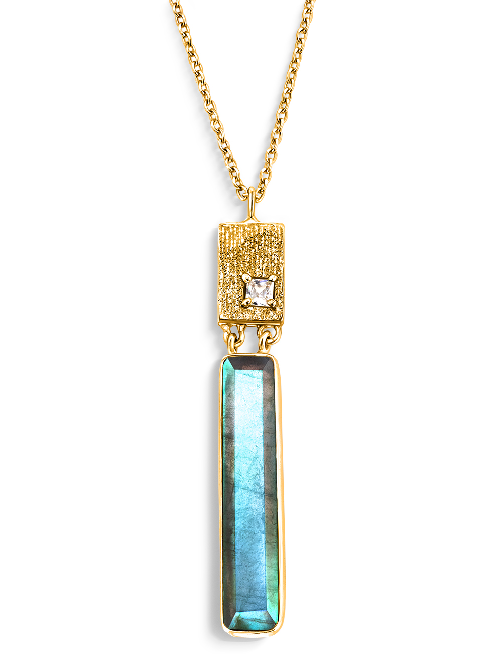 Серебряное колье женское на шею с натуральным лабрадоритом и фианитом. Современная интерпретация средиземноморского этнического стиля. Ультрамодное желтое матовое покрытие - это слой позолоты 750 пробы 5-10 микрон (Vermeil). Центральный декоративный элемент колье серебро 925 крепится к цепочке классического якорного плетения. Длина цепочки - 70 см плюс добавочные 5 см. Размер лабрадорита - 31 на 6,5 мм, размер фианита - 3,5 на 3,5 мм, размер подвесного элемента - 47 на 8 мм Ср. вес - 9,1 гр. Замок - карабин. Длинное позолоченное колье с камнем выгодно подчеркнет вашу индивидуальность, может быть вечерним аксессуаром или украшением на каждый день! Оттенок и иризация камня может незначительно отличаться от фотографии.