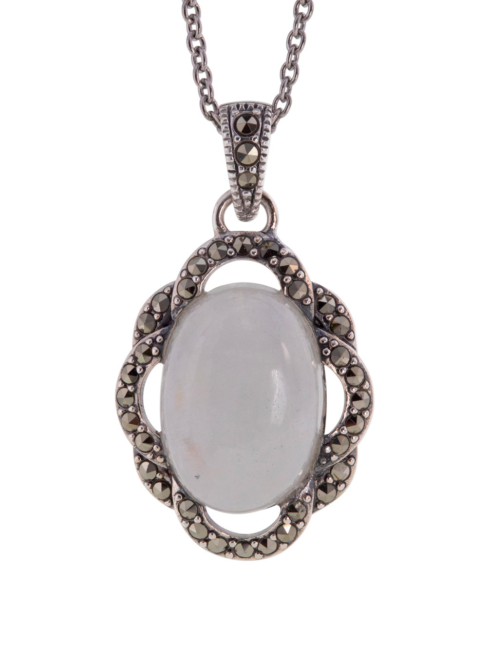 Серебряный кулон ALEXANDRE VASSILIEV с лунным камней и марказитами Swarovski на цепи