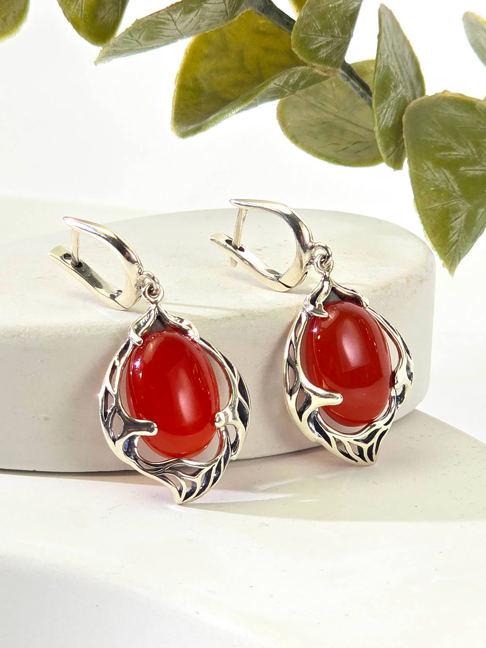 Серебряные серьги с сердоликом