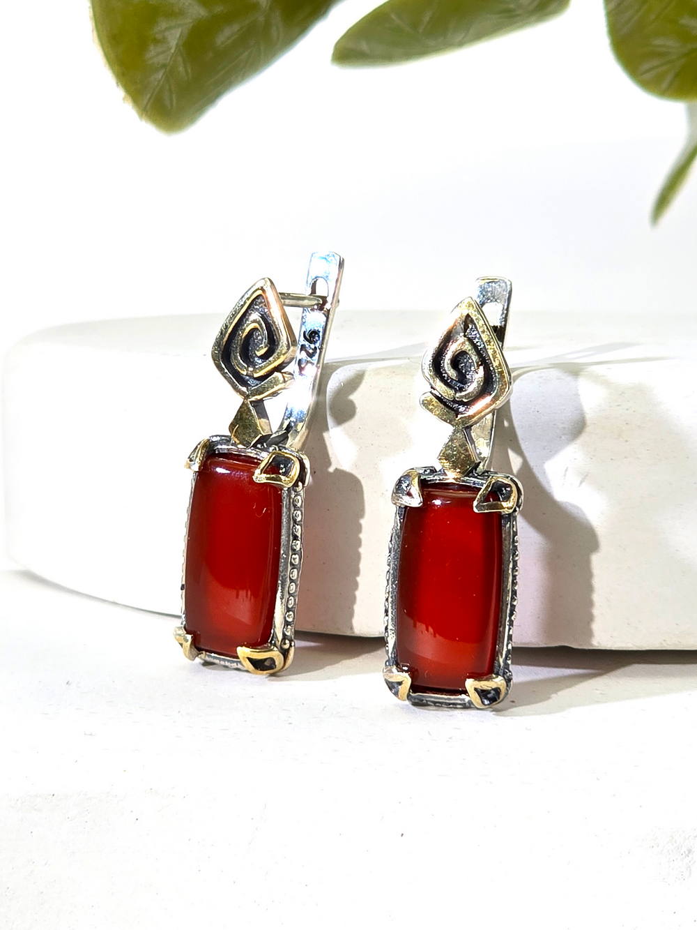 Серебряные серьги с сердоликом и позолотой
