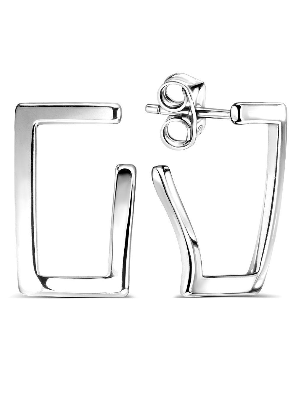 Серебряные оригинальные серьги в виде незаконченного прямоугольника. Серьги без камней покрыты родием (металл пратиновой группы, толщина слоя родия 10 микрон надежно защищает серебро от потемнения), что делает их неотличимыми от украшений из белого золота.Замок пусета (гвоздик) прочно фиксирует необычную серьгу в ухе, позволяет регулировать силу нажатия зажима. Серьги геометрия выгодно подчеркнет вашу индивидуальность, может быть вечерним аксессуаром или украшением на каждый день. Рабочая зона штифта - 8 мм. Размер серьги - 17 на 8 мм, занижение штифта - 1 мм. Средний вес - 2,05 гр. Оригинальная, приятная на ощупь, подарочная упаковка станет хорошим дополнением к качественным необычным серьгам. Ювелирное украшение в коробочке - идеальный подарок для себя, подруги или любимой.